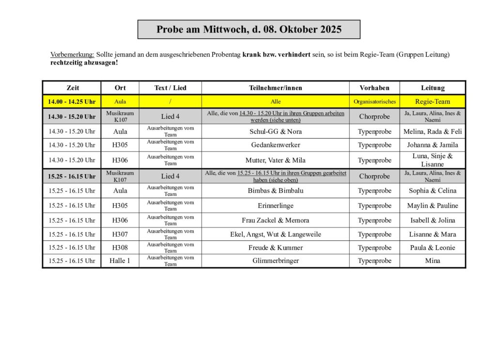 Hier findet ihr den aktuellen Probenplan