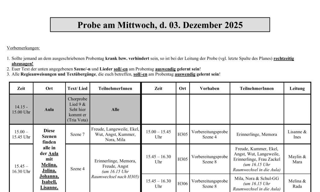 Hier findet ihr die unsere nächsten Termine, die Rollenvergabe, …