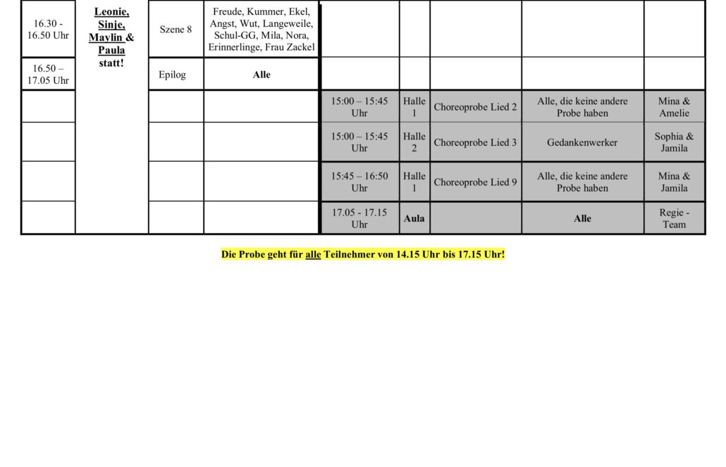 Hier findet ihr den aktuellen Probenplan